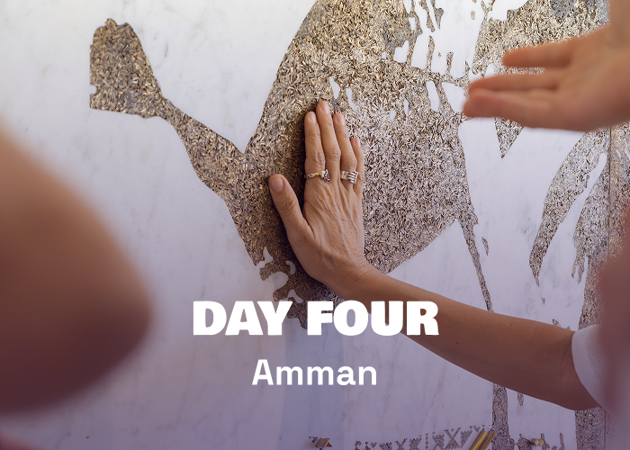Today we’ll start the day by visiting a local art collective with over 40 Jordanian and Palestinian artists. You’ll have time to do some shopping, meet the local artists, and learn more about Levantine craftsmanship.